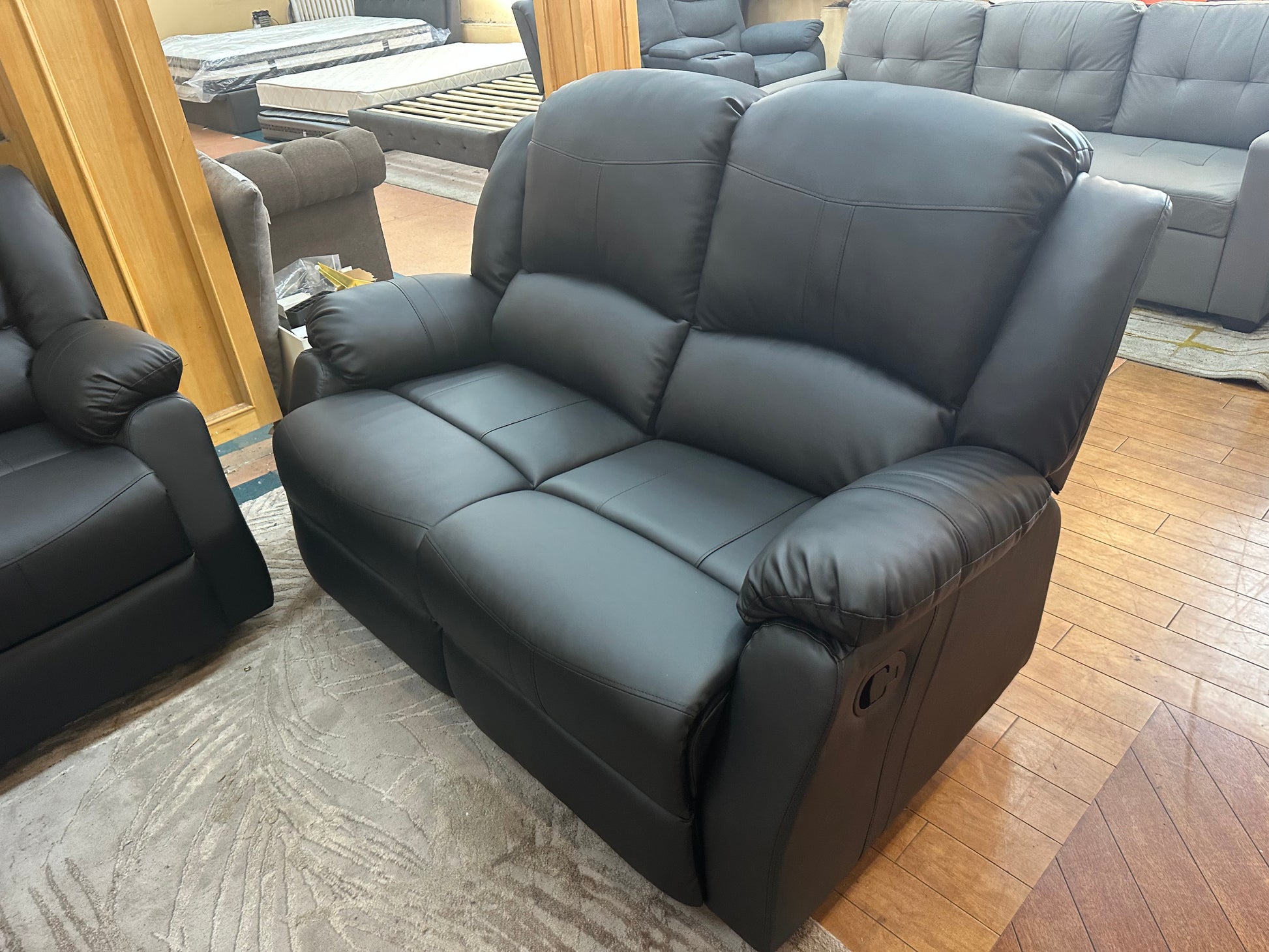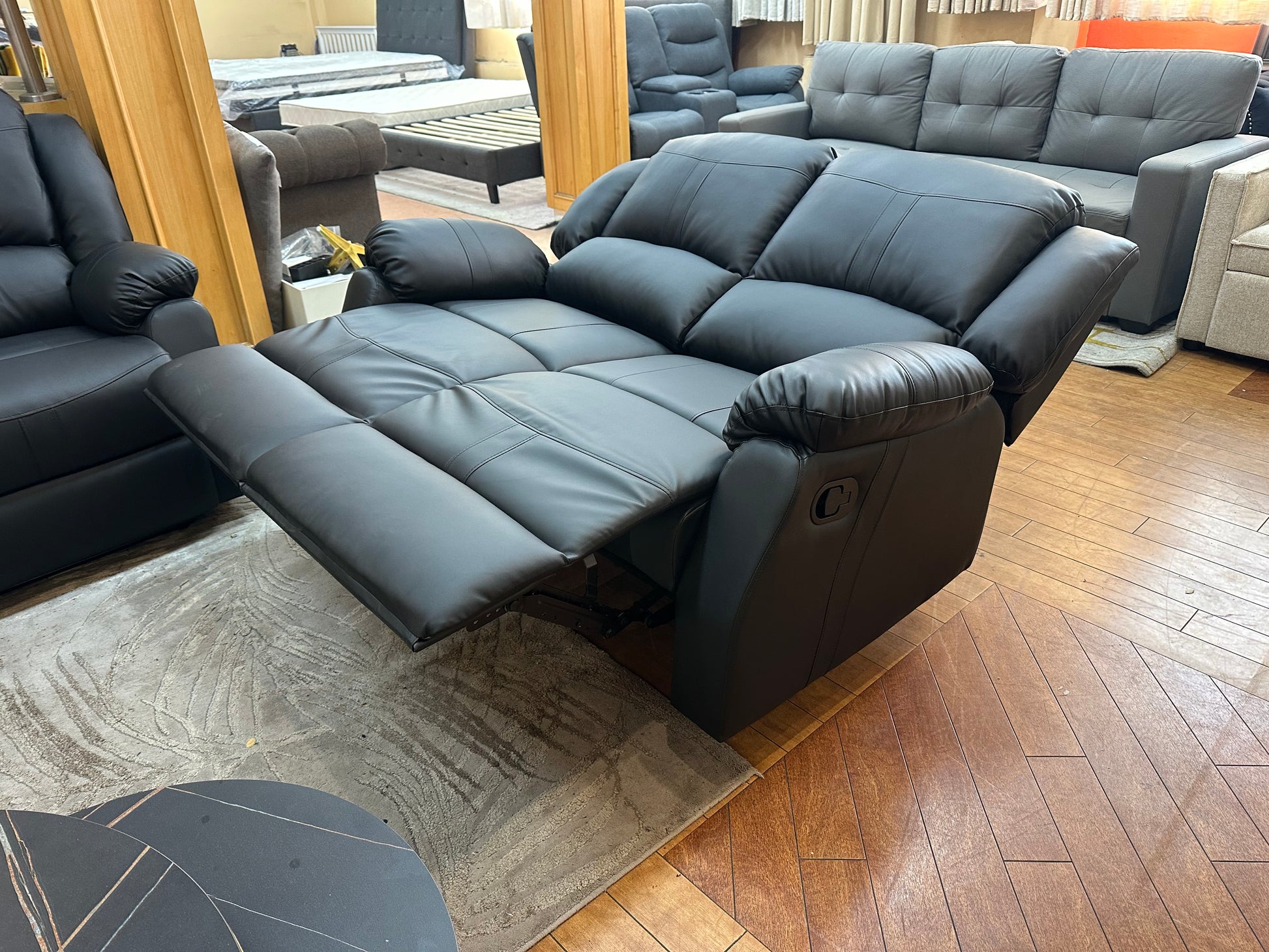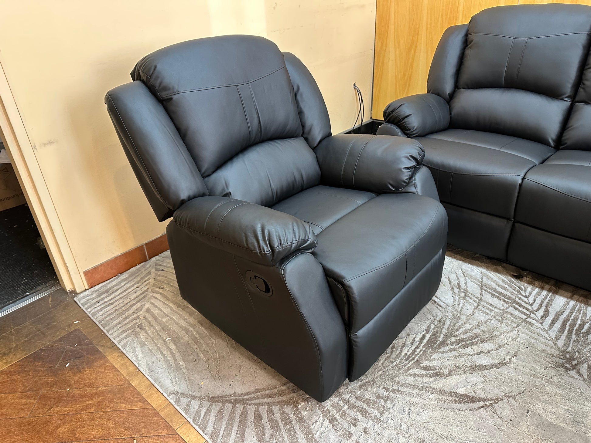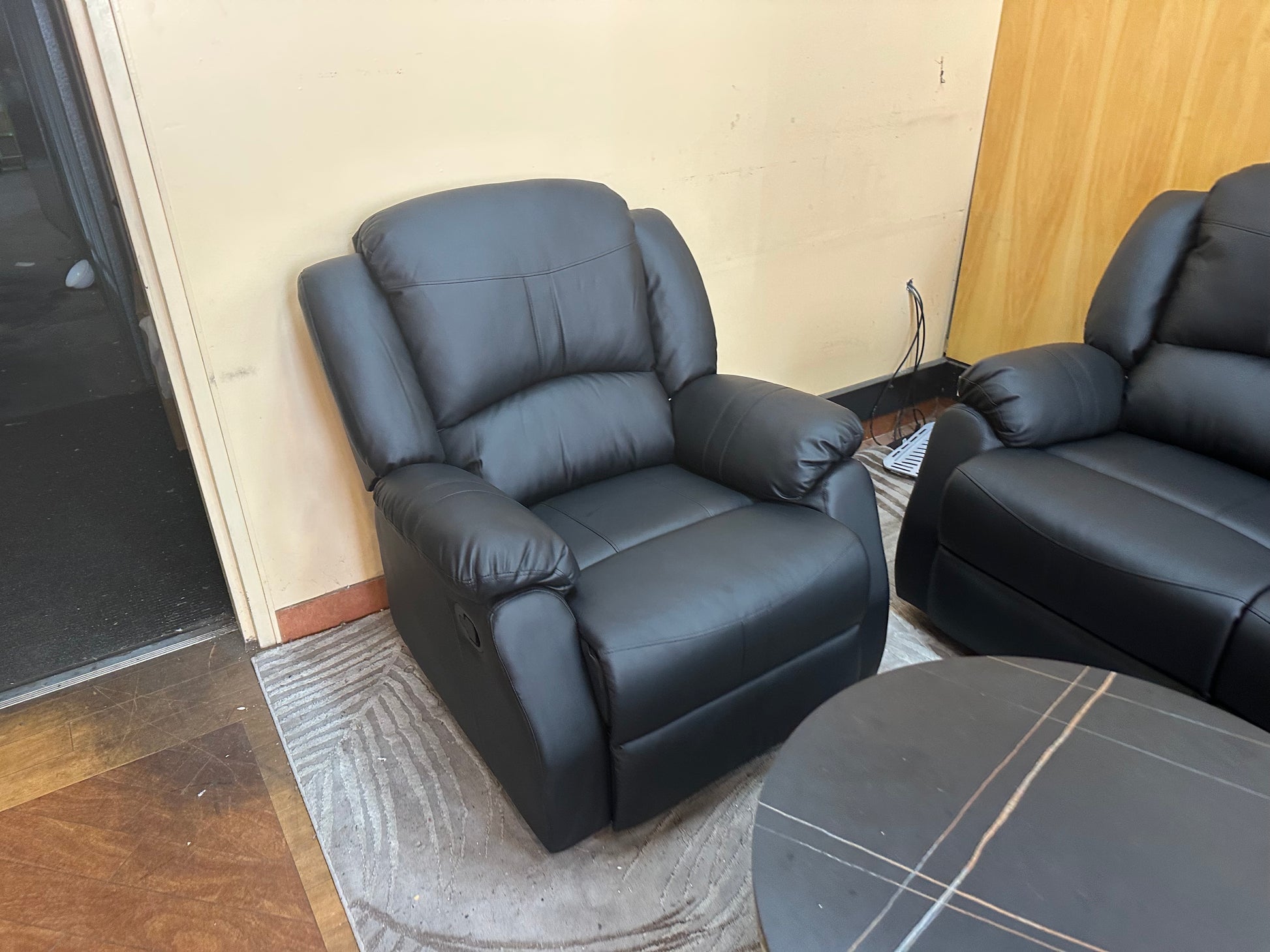 Introducing our exquisite **Black PU leather extremely comfortable recliner sofa set* where timeless luxury meets unparalleled comfort. With its rich high quality PU leather and stunning manual recliners, this statement piece is designed to elevate any room in your home, making it the perfect blend of sophistication and style.