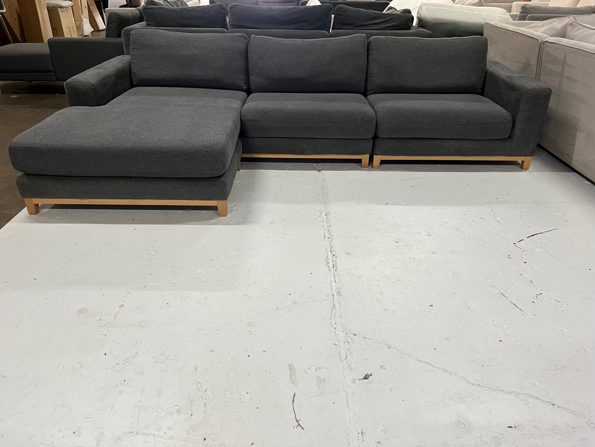 Perfect condition reversible chaise L Shape sofa. beautiful natural fabric dark grey colour all the cushion covers are removable and Machine washing the sofa size is 3 m wide and size is 1.7 Delivery and installation available you are welcome to come and inspect This Sofa is slightly preowned but perfect condition as New has been professionally clean and ready to go