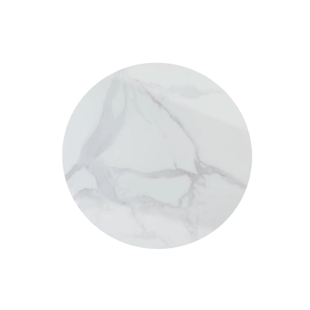 White marble-look sintered stone top — heat, scratch, and stain resistant