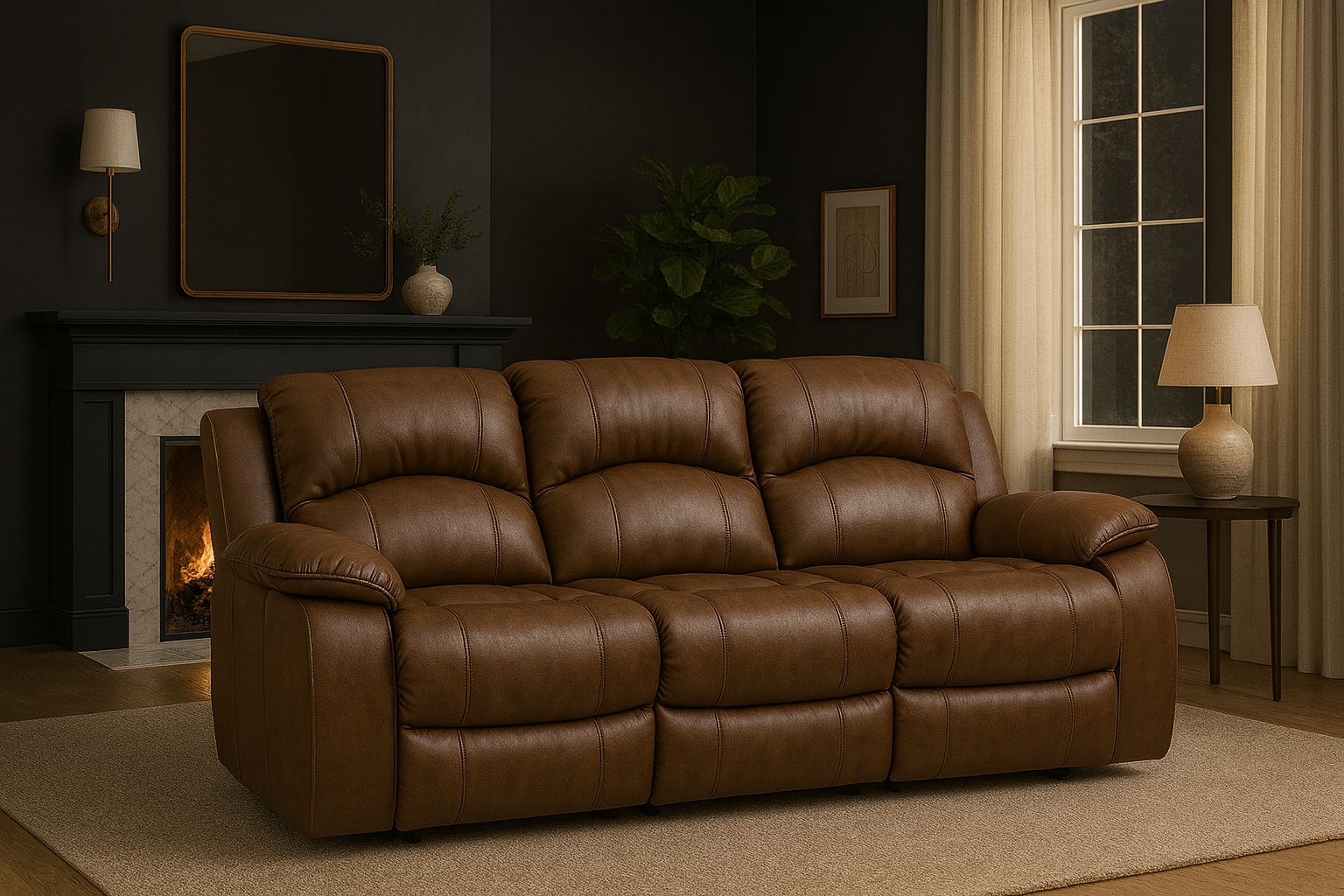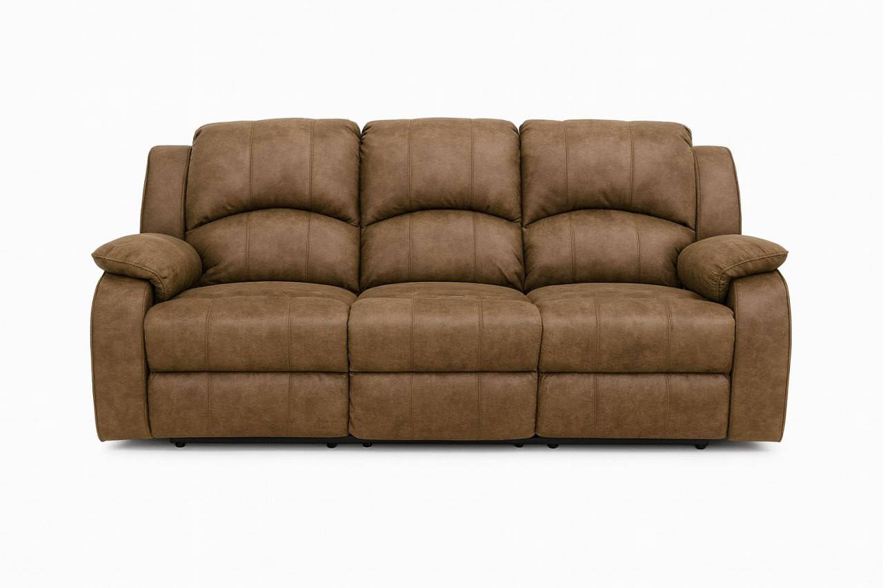 3-Seater Manual Recliner Sofa – Upholstered in rich wipeable techno-fabric, offering plush cushioning and pillow-top armrests for deep relaxation.