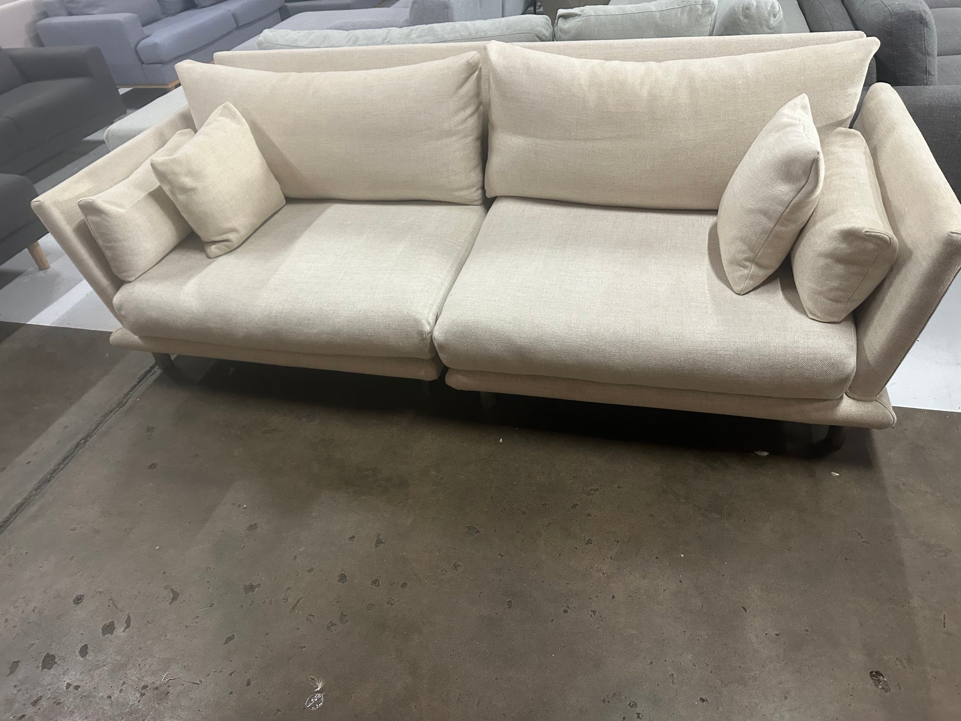Looking for a stylish, comfortable, and eco-conscious addition to your home? This preowned Custom made 2.5 seater sofa is the perfect pick! Modular and easy for delivery or pick up