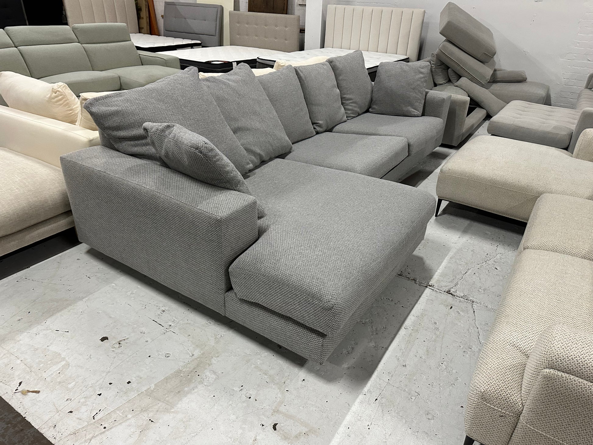 Professionally cleaned, super comfy deep seats, removable cushion covers, and beautiful modern grey colour.