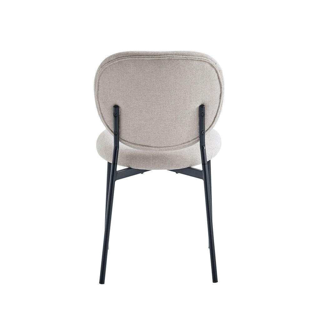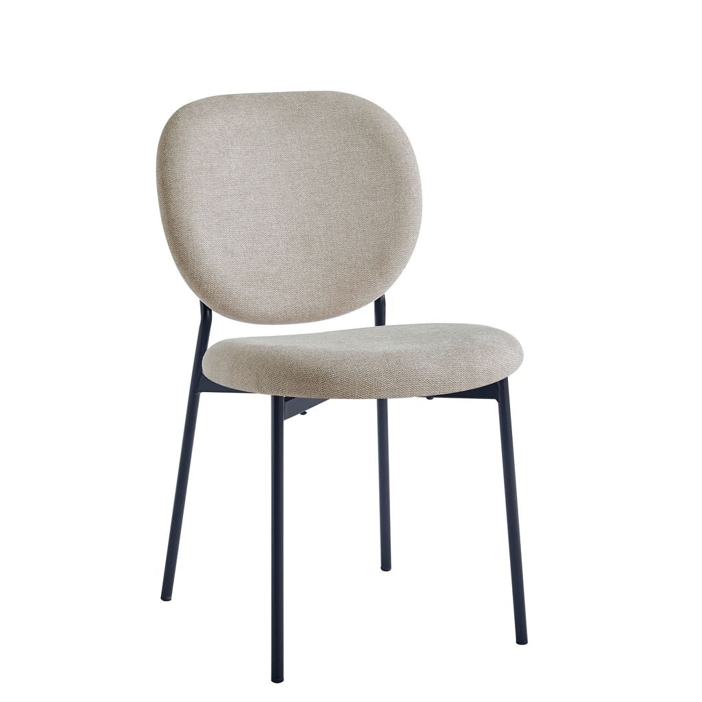 Taupe fabric chairs with curved backrests for comfort and support