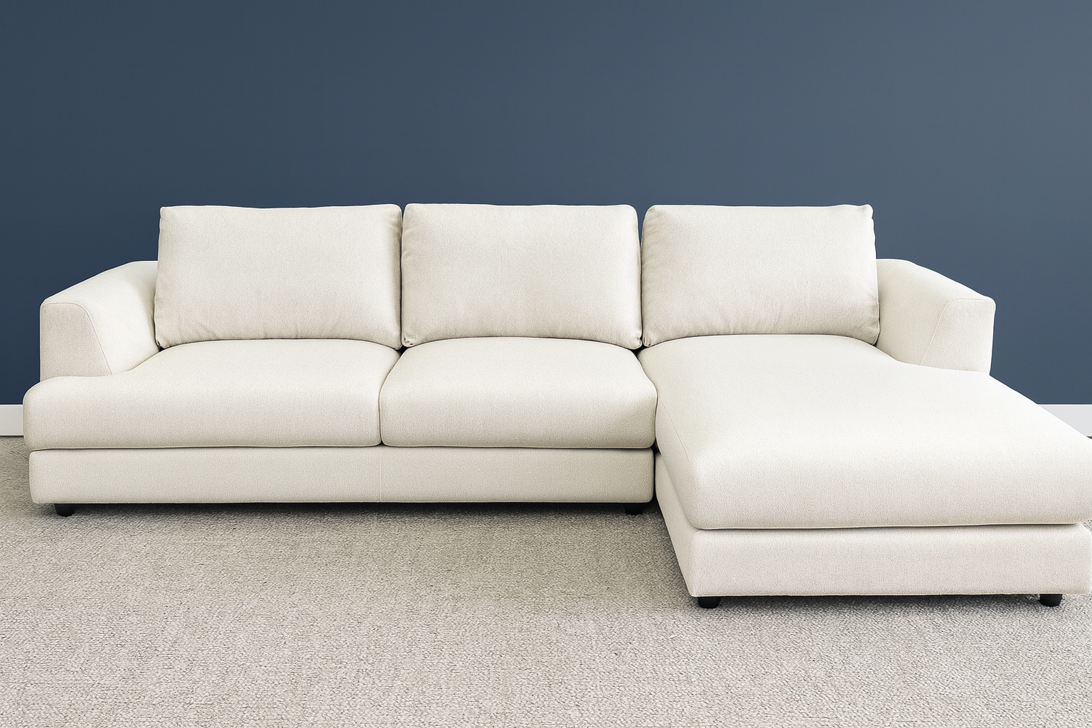 Modern L-Shape Sectional Sofa – Cream Fabric